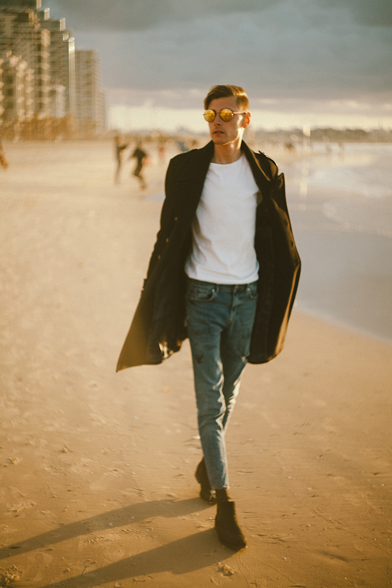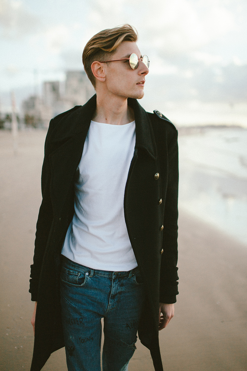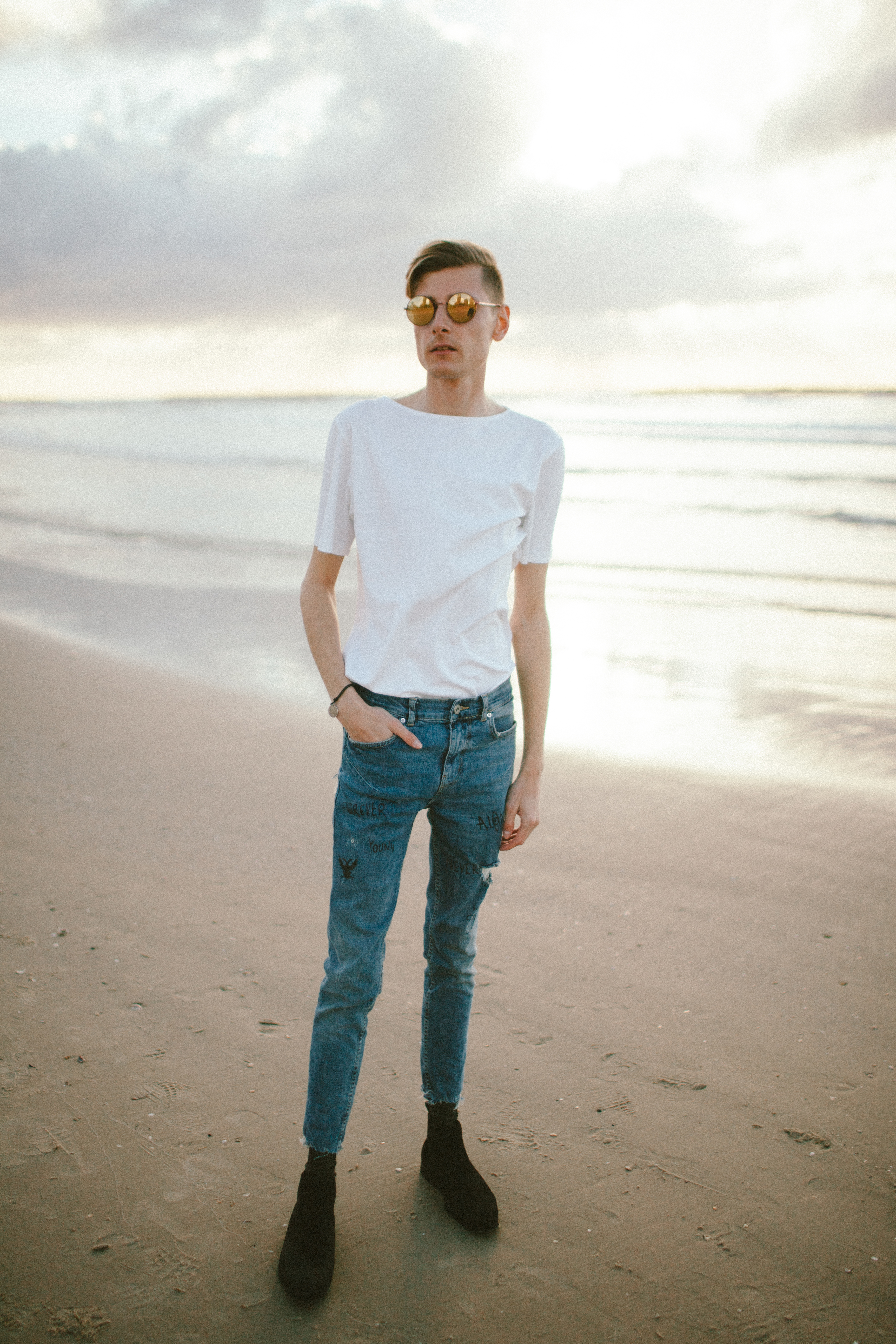 Świetna stylizacja. Chociaż niektórym ”obcisłość” u faceta kojarzy się zle, w takim wydaniu jest bardzo męska i nadaje charakteru. Dodatkowo zdjęcia wprowadzają nastrój niedomówień. Chciałoby się zapytać; ”Kim jest tamten facet?” . A chyba o to chodzi w modzie.