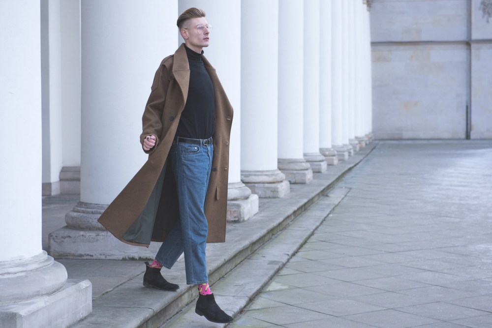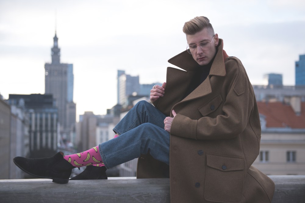 Nie lubie kolorowych skarpet u facetów 😀 ale ten płaszcz jest piękny i bardzo Ci w nim do twarzy