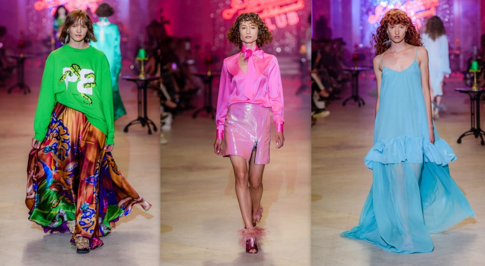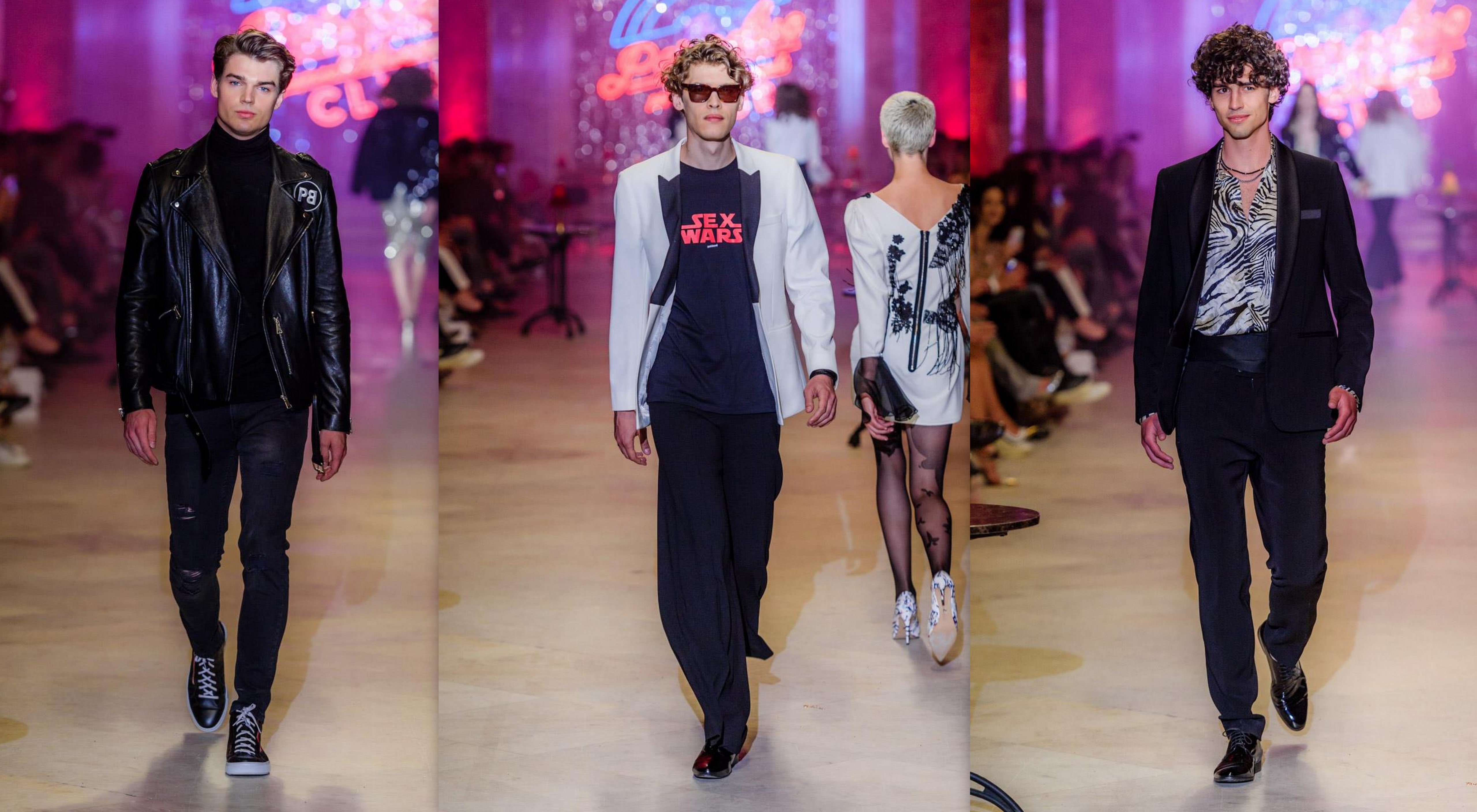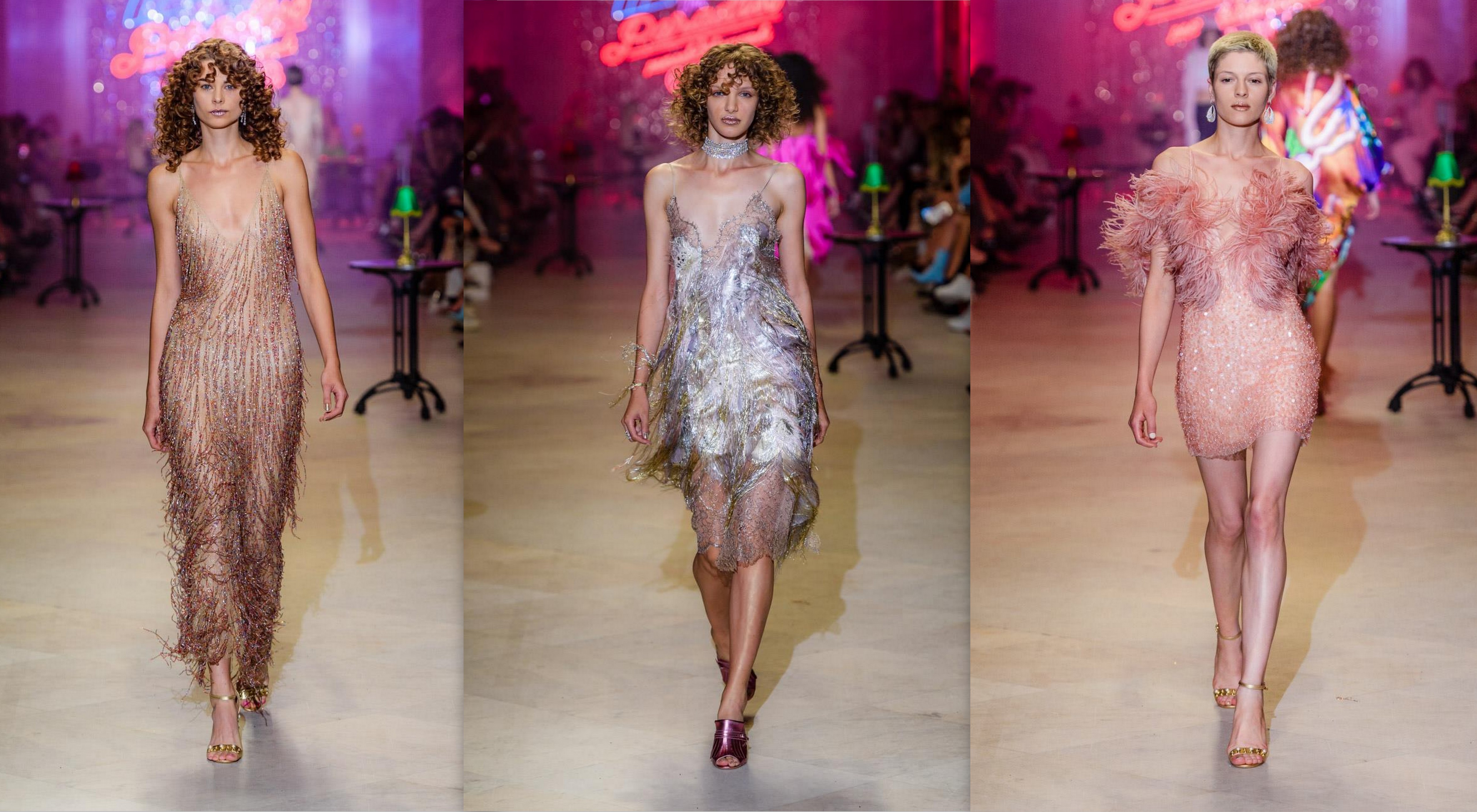 Wejście na wybieg czarnoskórej modelki stworzył cudowny, egzotyczny klimat i nadał charakter całego pokazu. Kolekcja została zmiksowana, mogliśmy zobaczyć projekty linii basicowej Plants, ślubnej, a także streetwear. Bardzo ucieszyły mnie prezentowane męskie sylwetki, których zabrakło w Jubileuszowym pokazie mody. Modele wspaniale prezentowali się w rajskich, niebieskich bluzach, rokowych ramoneskach, ognistych bomberkach czy smokingowych marynarkach. Bez wątpienia wybieg błyszczał i zachowany był w klimacie retro, disco. Pojawiła się ogromna gama kolorystyczna: intensywna zieleń, złoto, turkus, fuksja, czerń, biel czy chabrowy fiolet. Mogliśmy podziwiać pełny eklektyzm, który charakteryzuje się niecodziennymi połączeniami form, kolorów, struktur i tkanin. Na wybiegu zobaczyliśmy sukienki z frędzlami, koszule ze zwierzęcymi printami, oversize’owe garnitury czy dzwony dico, w stylu ABBA. W kolekcji nie zabrakło charakterystycznych dla marki tiuli, koronek czy cekinów wyglądających obłędnie na gołych ciałach modelek.