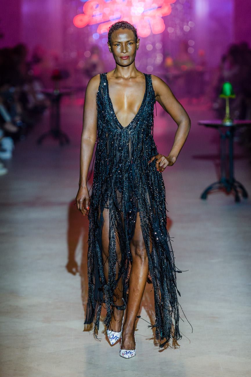 Yes Sir, I can boogie… Wczorajszy wieczór spędzony w The Paradiso Club marki Paprocki & Brzozowski przeniósł nas do lat 70. Pokaz najnowszej kolekcji otworzyła Waris Dirie, Somalijska modelka i pisarka. Autorka znanej powieści „Kwiat Pustyni”. Modelka znana przede wszystkim z prestiżowych kampanii (między innymi Chanel czy Levi’s), ale także ze swojej działalności – walki o prawa kobiet, jako ambasadorka dobrej woli ONZ.