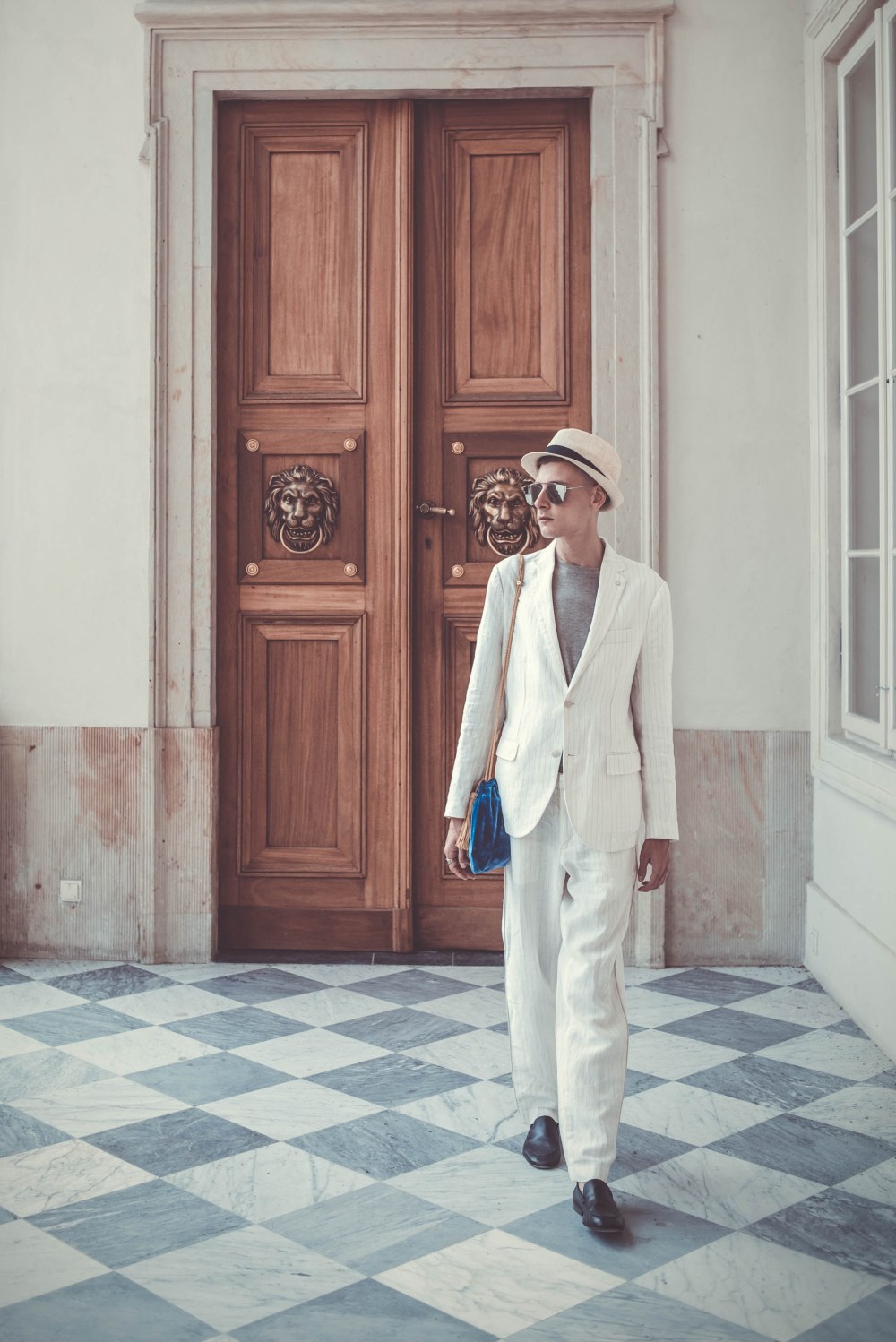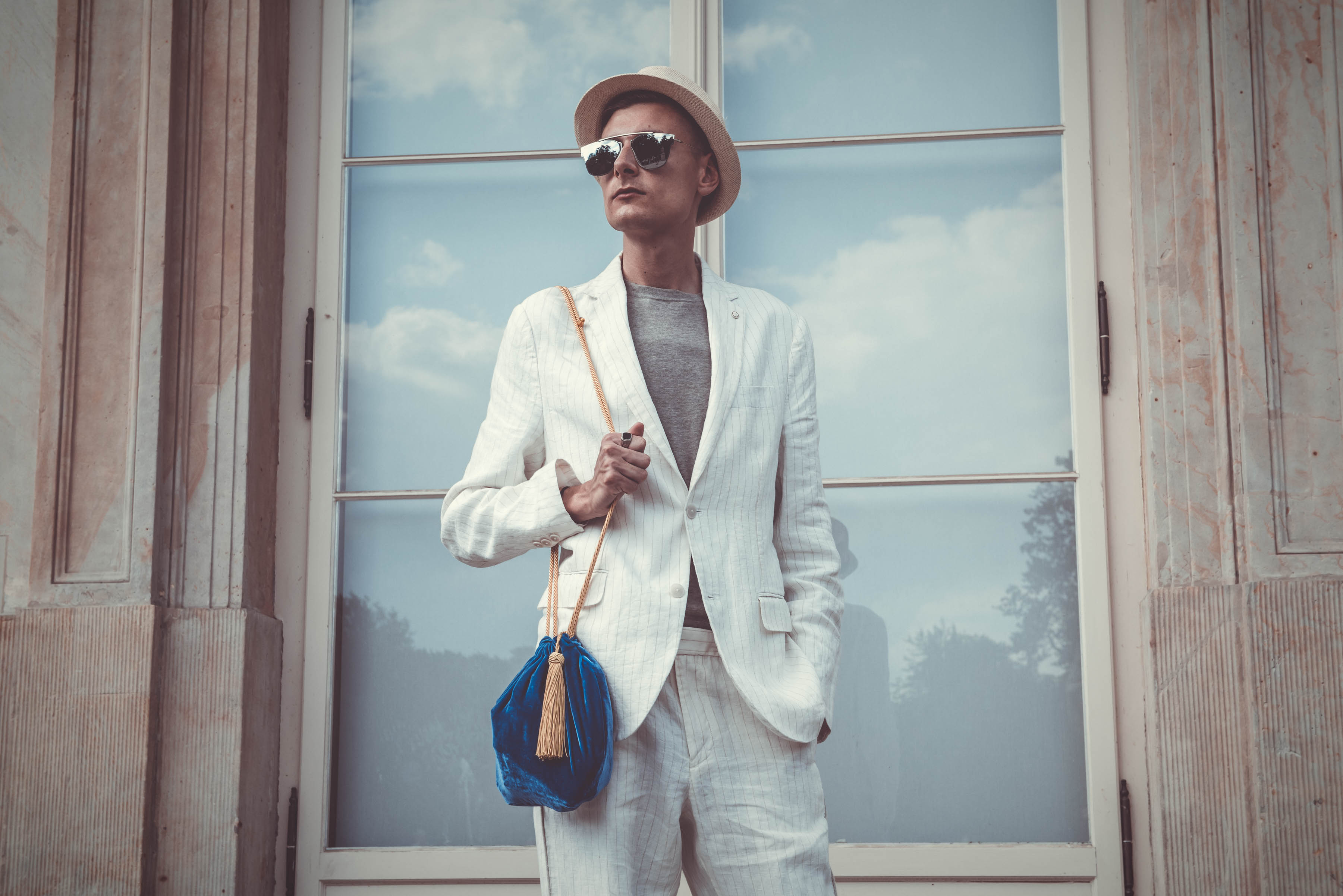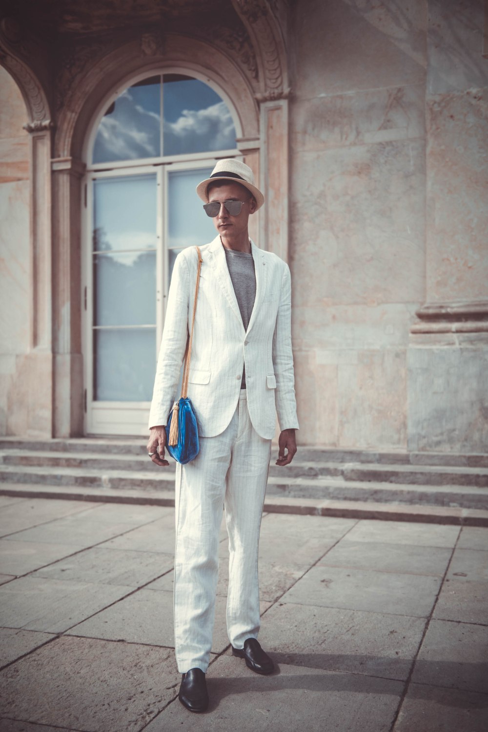 SUIT: MANGO / SHIRT: MANGO / BAG: THERE IS NO MORE! / CAP: H&M / SIGNET: VINTAGE GLASSES: BRYLOVE / LOAFERS: ZARA