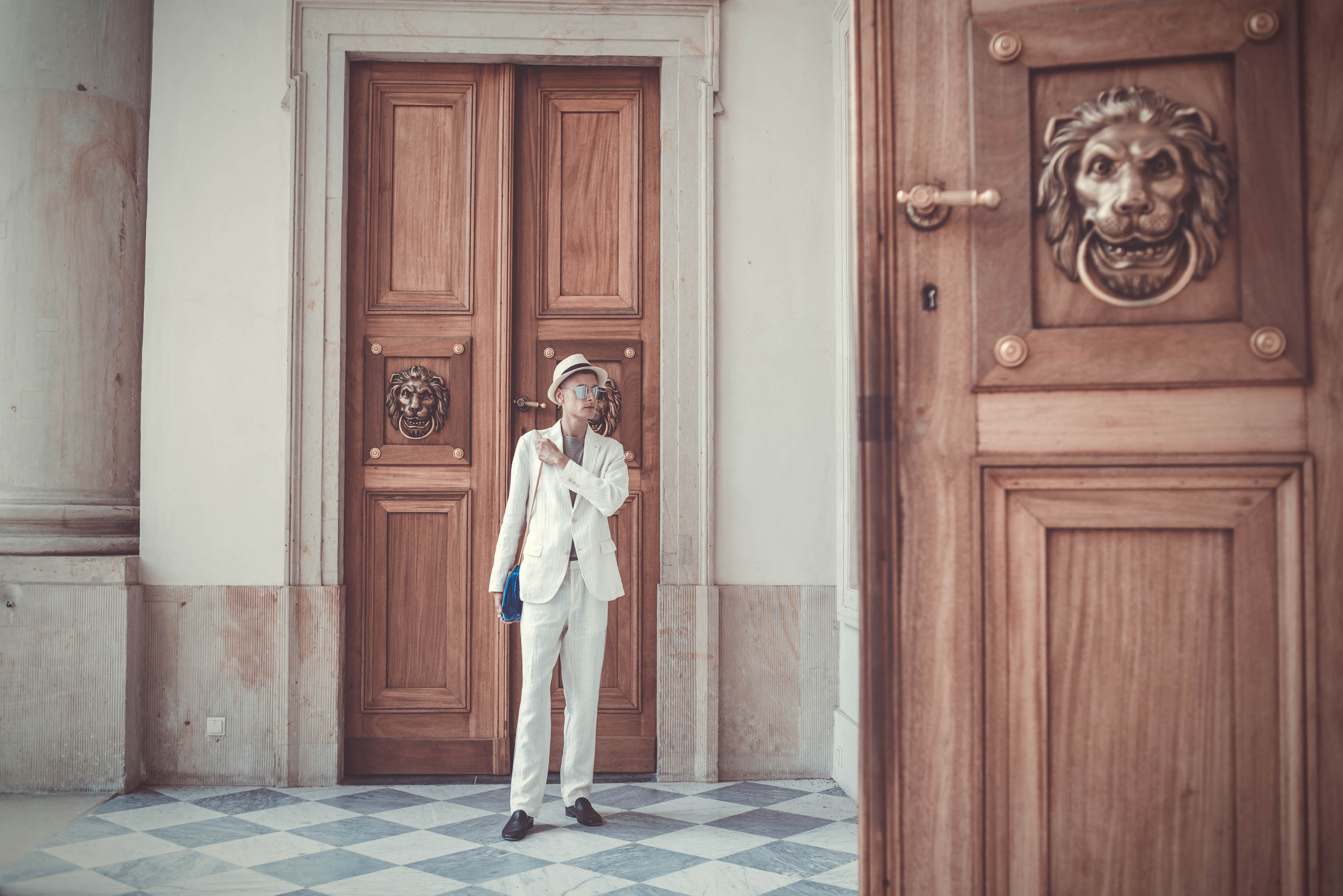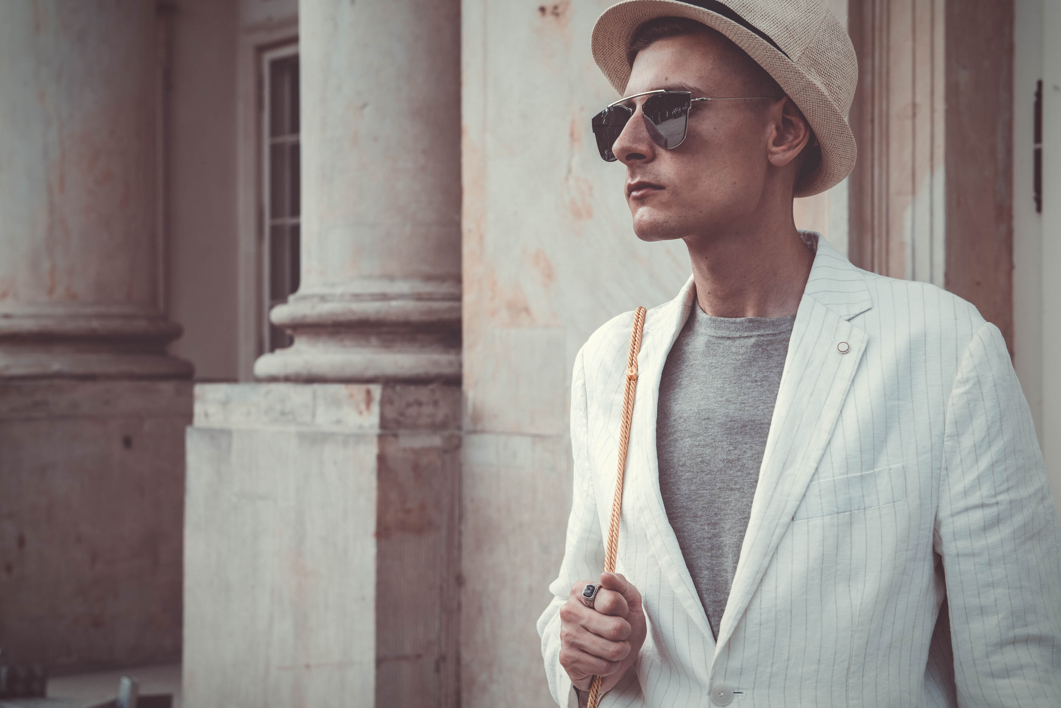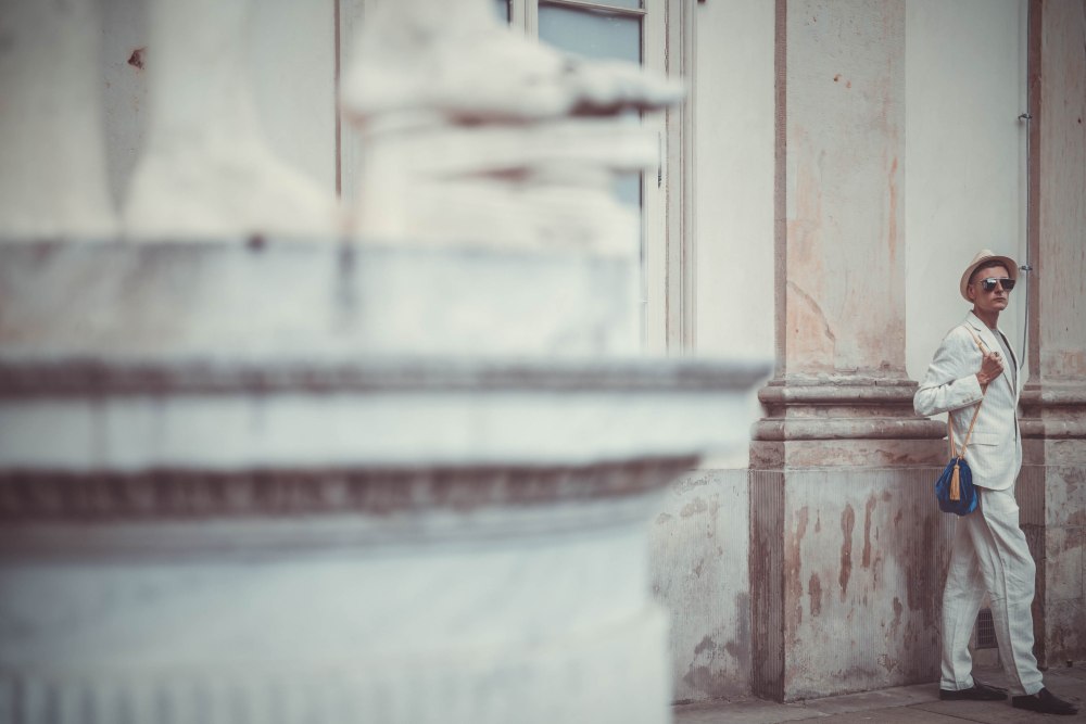 SUIT: MANGO / SHIRT: MANGO / BAG: THERE IS NO MORE! / CAP: H&M / SIGNET: VINTAGE GLASSES: BRYLOVE / LOAFERS: ZARA