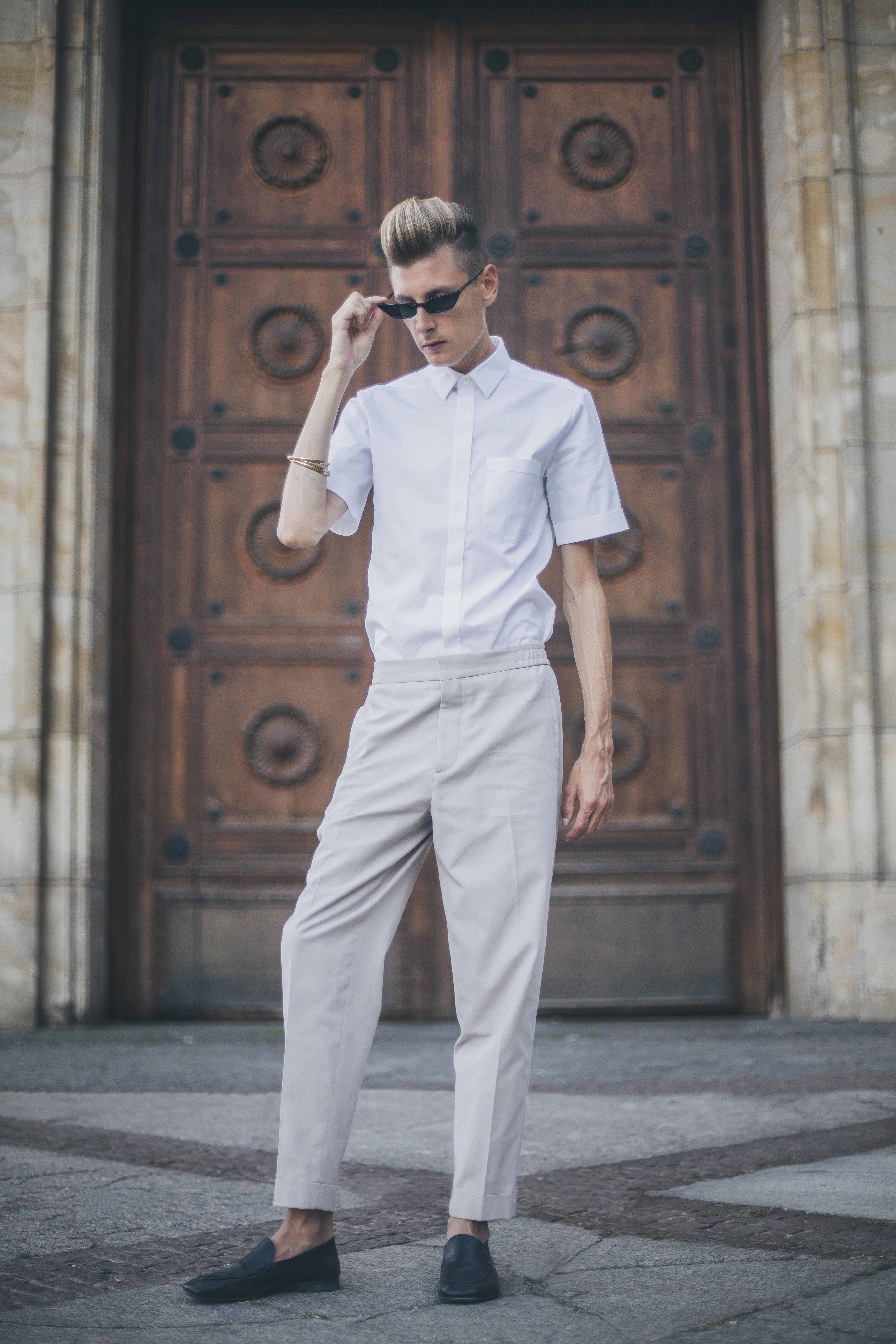 SHIRT: COS / GLASSES: BRYLOVE / PANTS: COS / JEWELLERY: VINTAGE / LOAFERS: ZARA