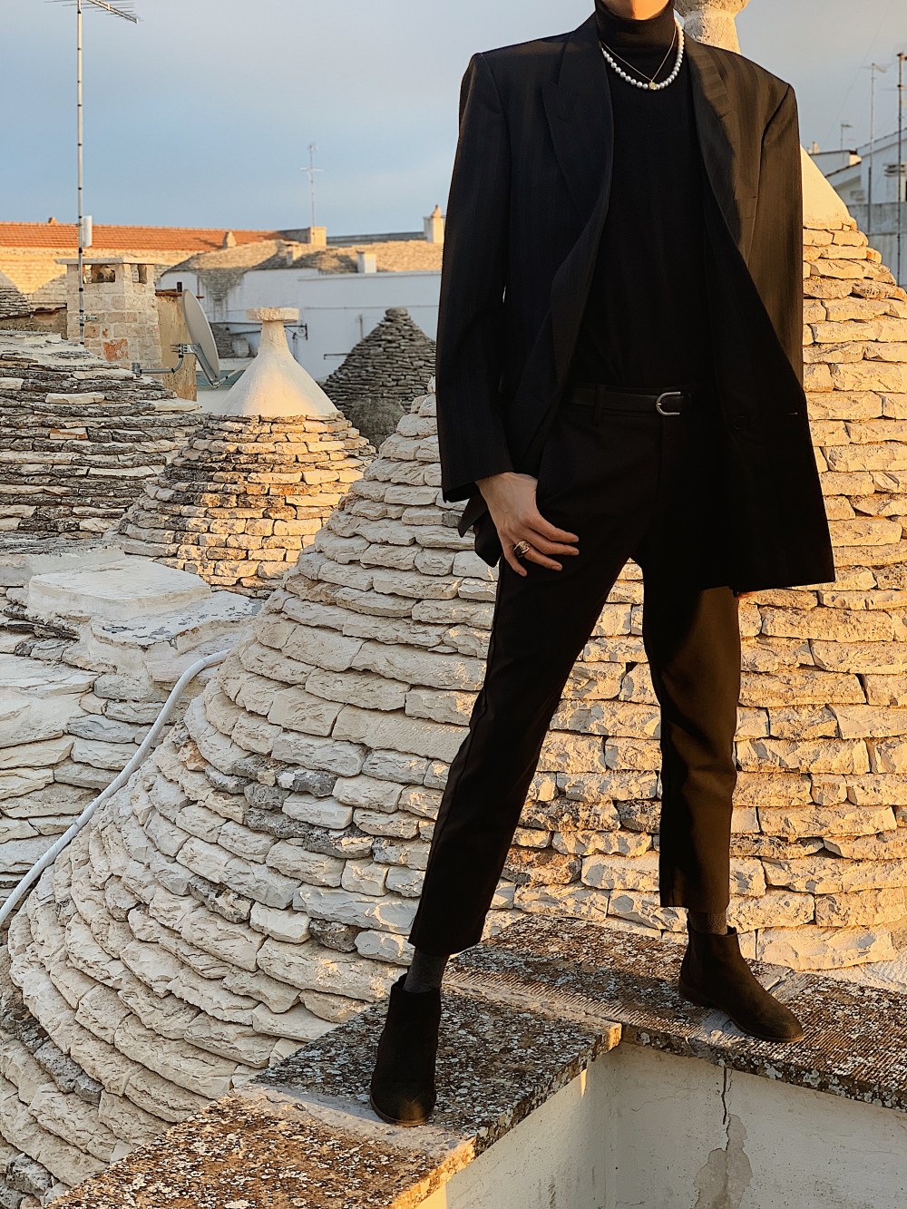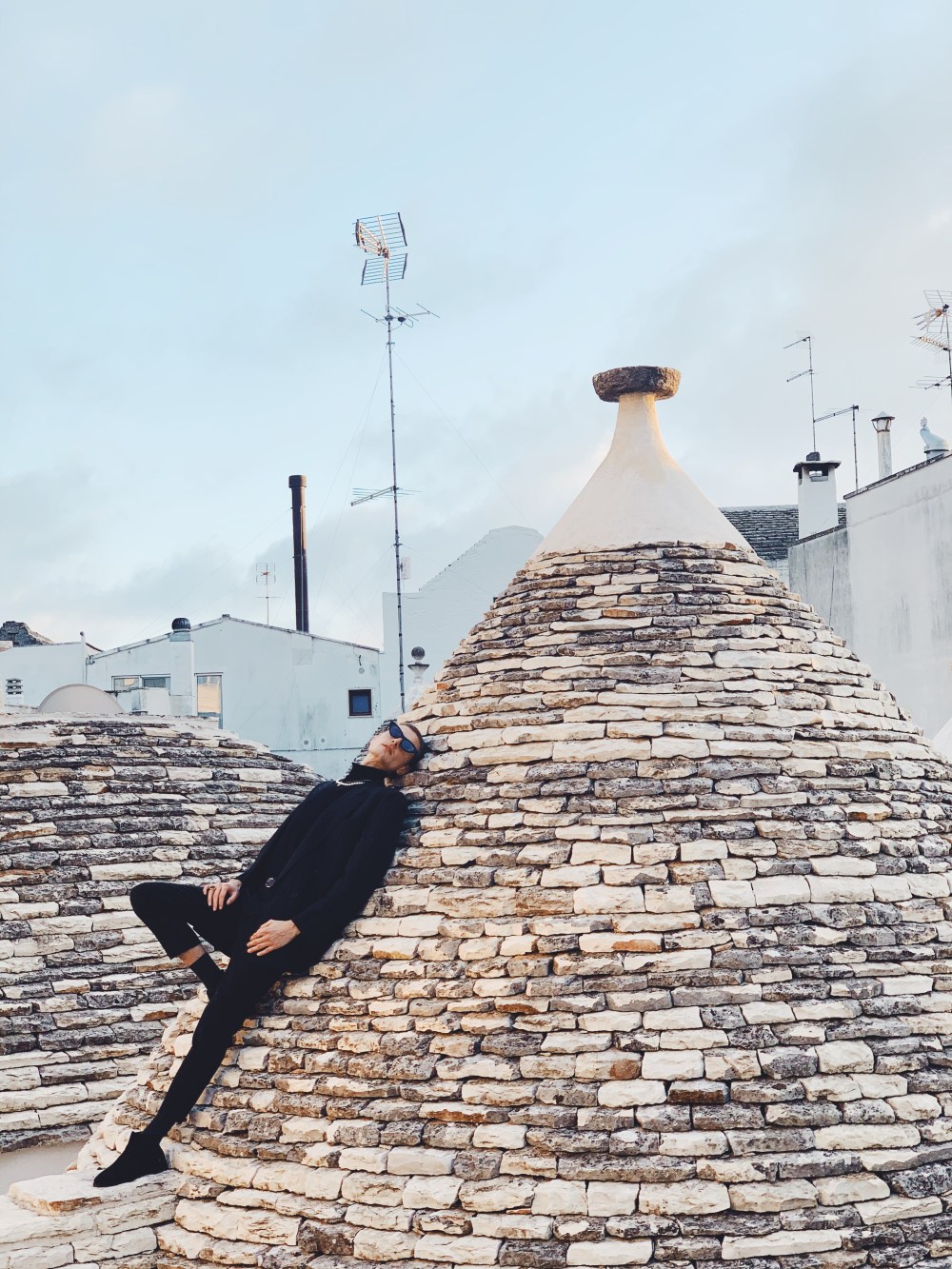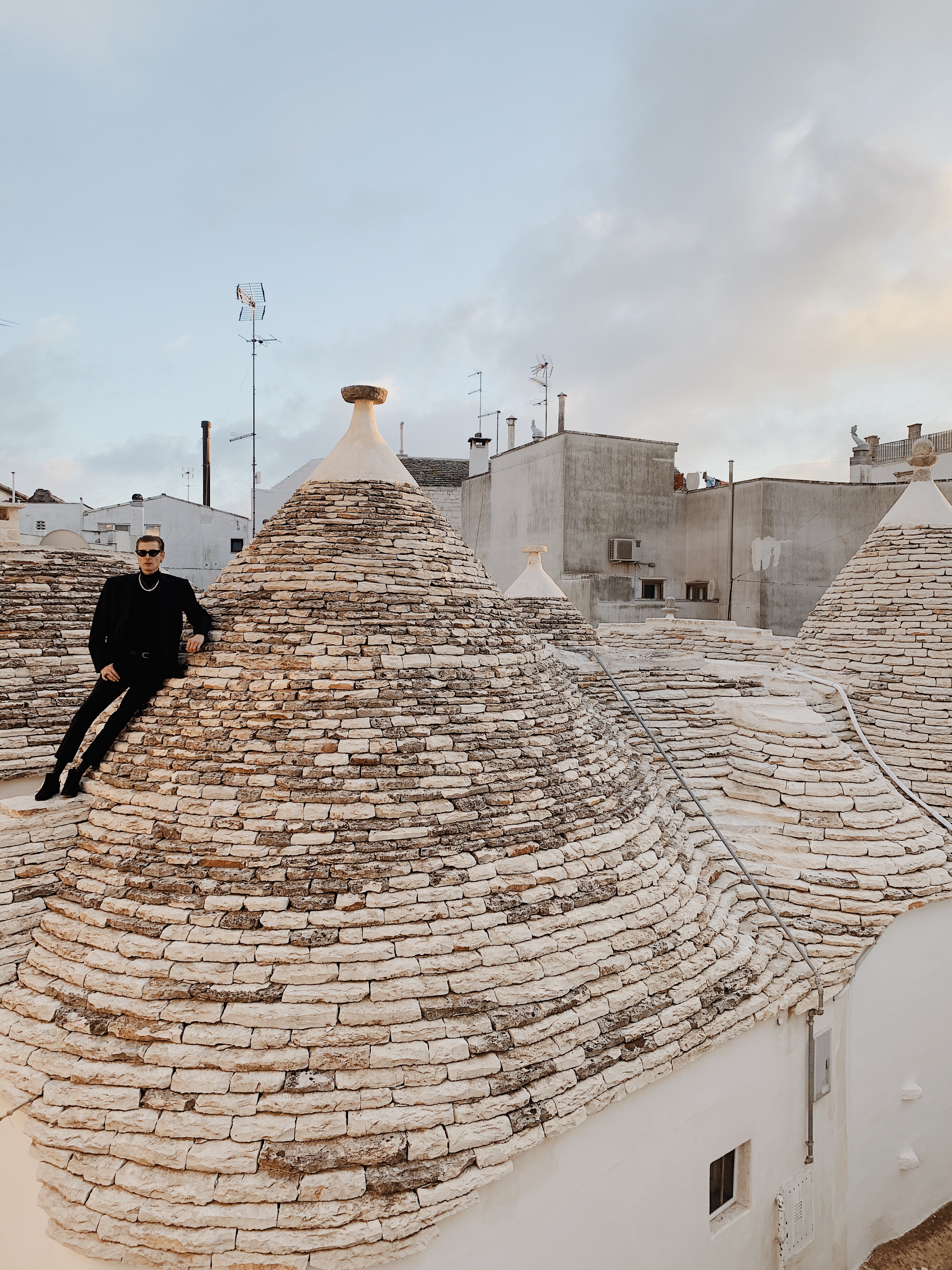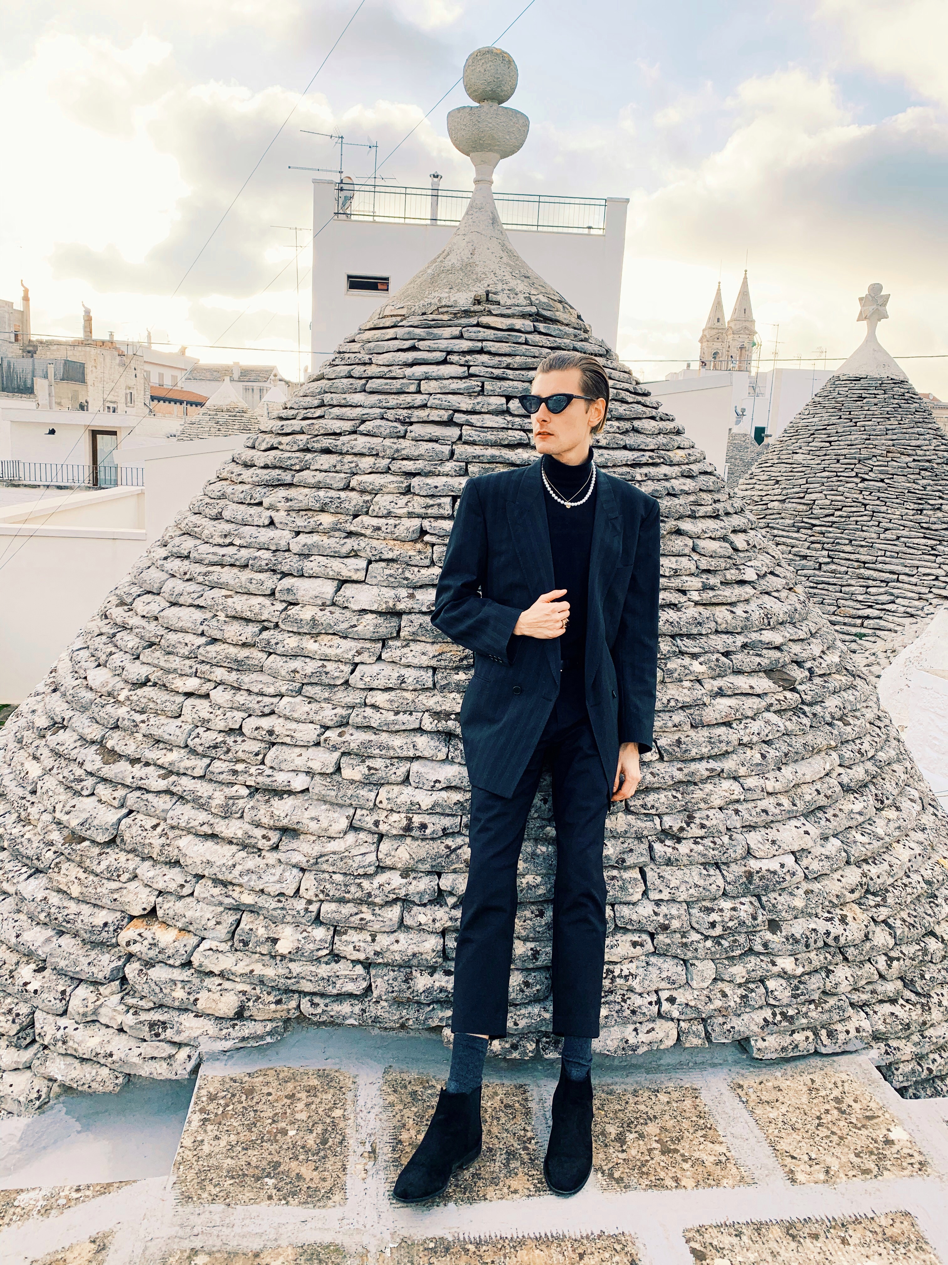 Ciao ragazzi, Hello Fashionlovers. To była spontaniczna decyzja. W listopadzie trafiłem na tanie loty do Bari. Bilet lotniczy kosztował mnie w jedną stronę 89 zł. Cudownie pomyślałem, uwielbiam włoskie jedzenie, klimat i ludzi. Nie słyszałem nigdy o tej miejscowości , ale postanowiłem zaryzykować. Ten wyjazd okazał się bardzo miłym doświadczeniem. Miasto Bari, przepiękne zrobię o nim osobny wpis. Zachwyciłem się nim od pierwszego wejrzenia. Nie jest to duże miasto, można go zwiedzić w ciągu jednego dnia. Dlatego warto wybrać się do innych miejscowości. Urokliwe Alberobello jest jednym z nich. Mam wrażenie, że czas się tutaj zatrzymał. Przepiękne domki z kamienia zwane trulli, przyciągają wiele turystów. Jak miło przyjechać poza sezonem. Co ciekawe do dziś są zamieszkiwane. Nic dziwnego, że trafiły one na listę UNESCO. Tam sesja zdjęciowa była najbardziej zabawna jak do tej pory. Szukając odpowiedniej przestrzeni, aby zrobić zupełnie inne zdjęcia niż turyści to było wyzwanie. Kiedy wspinałem się na dach, właścicielka domu wyszła i zaproponowała, że mogę zwiedzić go również od środka. Pomyślałem, że to żart. Obcy człowiek robi sobie zdjęcia po czyjejś posesji, nie pytając o nic bierze drabinę i się wspina.