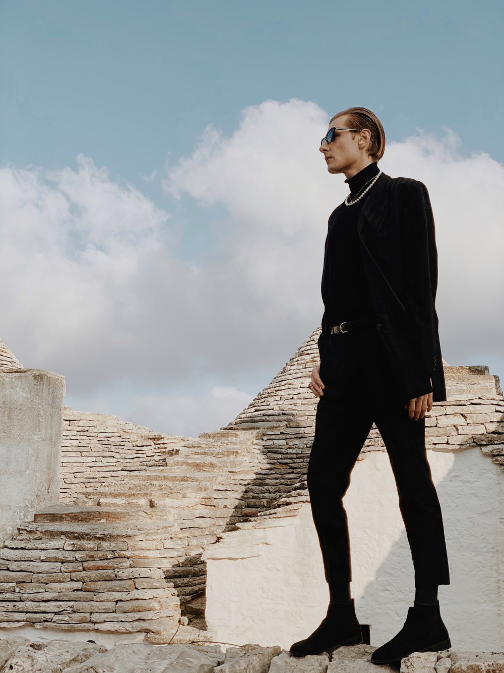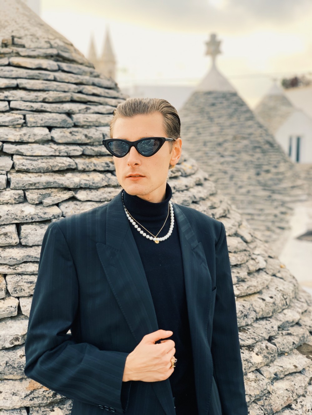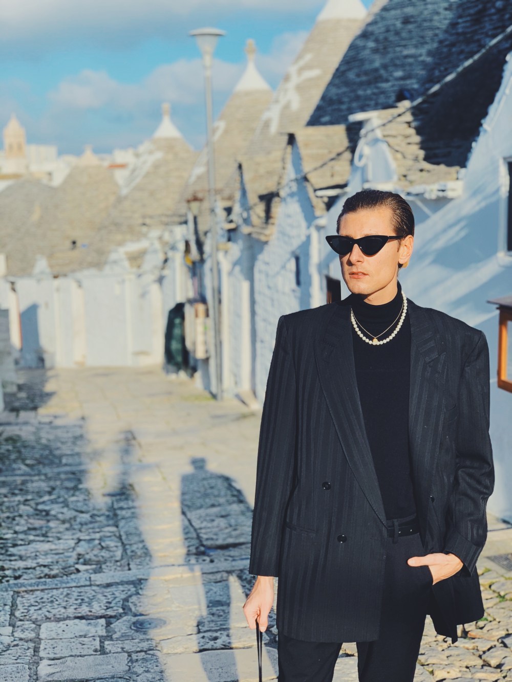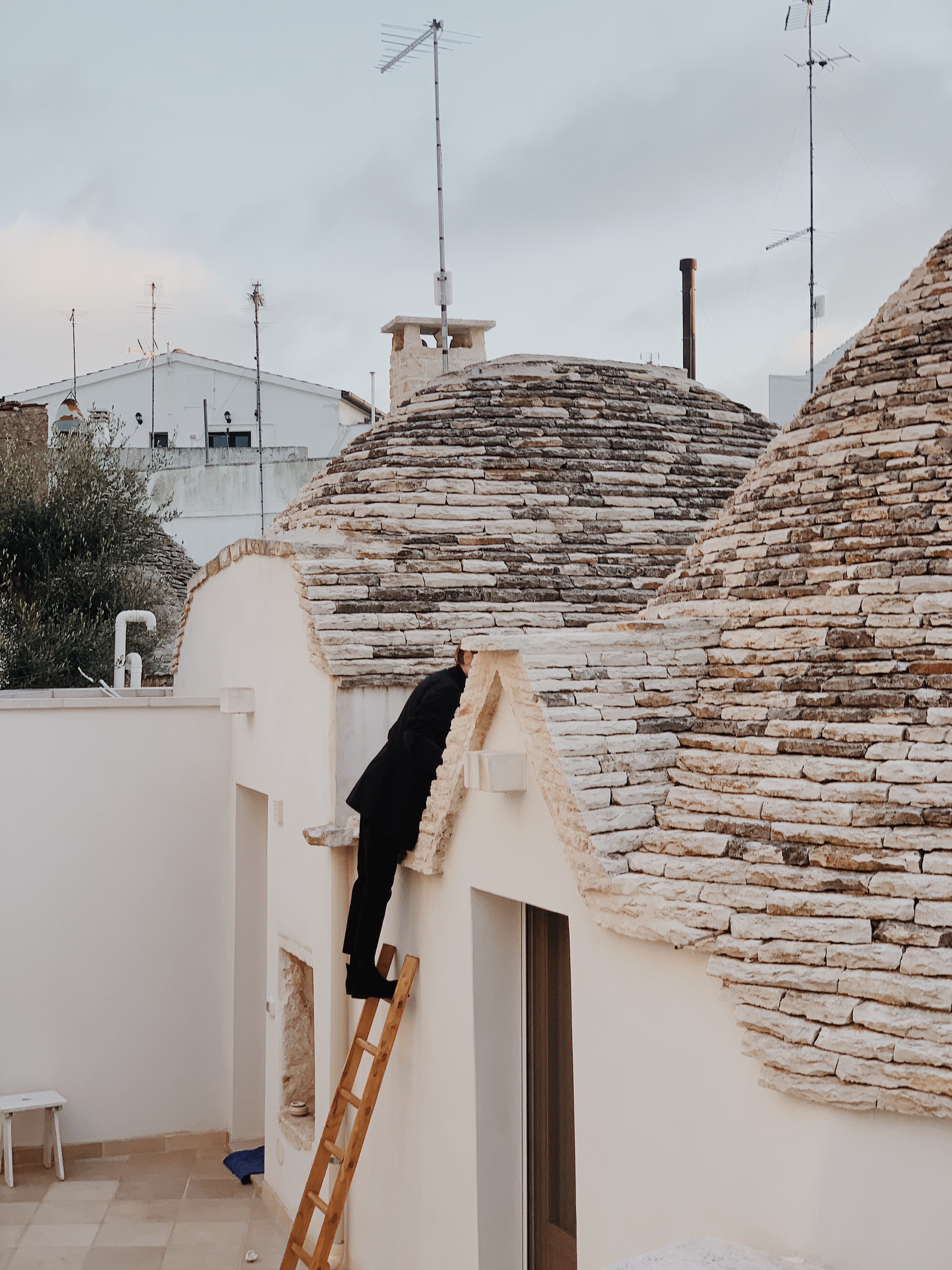 Ciao ragazzi, Hello Fashionlovers. To była spontaniczna decyzja. W listopadzie trafiłem na tanie loty do Bari. Bilet lotniczy kosztował mnie w jedną stronę 89 zł. Cudownie pomyślałem, uwielbiam włoskie jedzenie, klimat i ludzi. Nie słyszałem nigdy o tej miejscowości , ale postanowiłem zaryzykować. Ten wyjazd okazał się bardzo miłym doświadczeniem. Miasto Bari, przepiękne zrobię o nim osobny wpis. Zachwyciłem się nim od pierwszego wejrzenia. Nie jest to duże miasto, można go zwiedzić w ciągu jednego dnia. Dlatego warto wybrać się do innych miejscowości. Urokliwe Alberobello jest jednym z nich. Mam wrażenie, że czas się tutaj zatrzymał. Przepiękne domki z kamienia zwane trulli, przyciągają wiele turystów. Jak miło przyjechać poza sezonem. Co ciekawe do dziś są zamieszkiwane. Nic dziwnego, że trafiły one na listę UNESCO. Tam sesja zdjęciowa była najbardziej zabawna jak do tej pory. Szukając odpowiedniej przestrzeni, aby zrobić zupełnie inne zdjęcia niż turyści to było wyzwanie. Kiedy wspinałem się na dach, właścicielka domu wyszła i zaproponowała, że mogę zwiedzić go również od środka. Pomyślałem, że to żart. Obcy człowiek robi sobie zdjęcia po czyjejś posesji, nie pytając o nic bierze drabinę i się wspina.