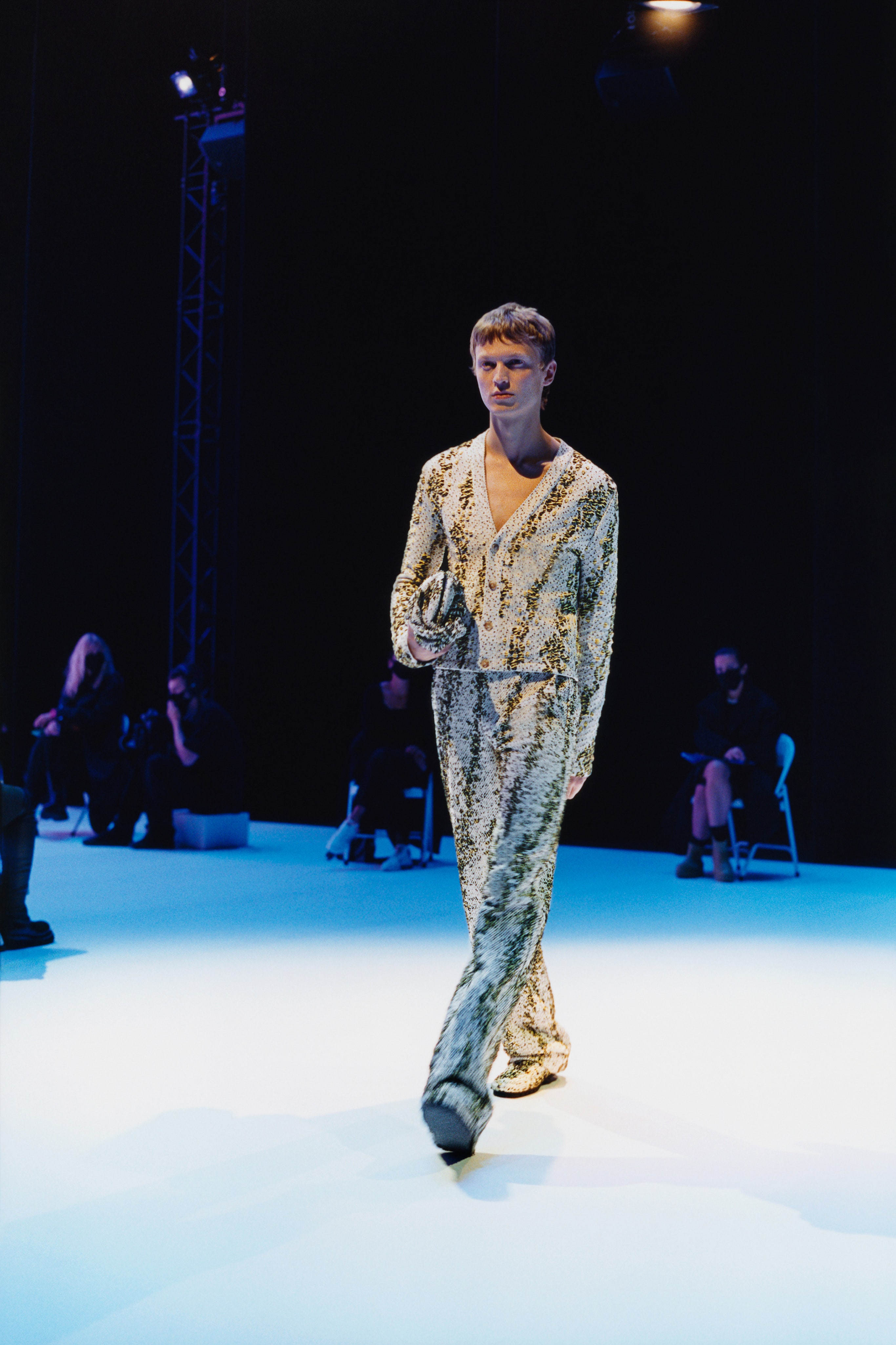 Nie sposób wspomnieć o dodatkach, a w szczególności torebkach. Na wybiegu towarzyszyły one zarówno modelką jak i modelom. Już od kilku sezonów torba w rękach mężczyzny nikogo nie dziwi. Moda nie ma płci wraz z kolejnymi latami przekonujemy się o tym dosłownie. Duże, puchowe, dzianinowe w różnej gamie kolorystycznej sprawiły, że będą one pożądane przez wszystkich influencerów. Płócienne torby w charakterystycznym odcieniu zieleni, który Lee wybrał na opakowanie marki, z czterema oddzielnymi elementami w środku z pewnością staną się nowymi it-bags.