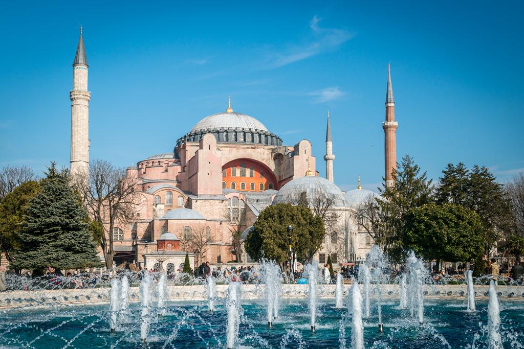 Dwa największe zabytki Stambułu, Błękitny Meczet i Hagia Sophia, usytuowane są naprzeciw siebie, a leżący między nimi teren parkowy to plac Sultanahmet. Samych Meczetów w mieście jest ogromna liczba. Dla mnie nie mają duchowego przeżycia, jednak ciekawie było obserwować w nich młode Turczynki, które poprawiały sobie makijaż czy przeglądały Tik-Toka ładując telefon. Błękitny Meczet, który swoją nazwę zawdzięcza dekoracji z płytek ceramicznych z Izniku jak i sama dzielnica robią ogromne wrażenie. Warto wybrać się również do Meczetu Sulejmana Wspaniałego. Wnętrze świątyni zachwyca swym ogromem i surowym majestatem. Na zewnątrz piękny widok na panoramę miasta.